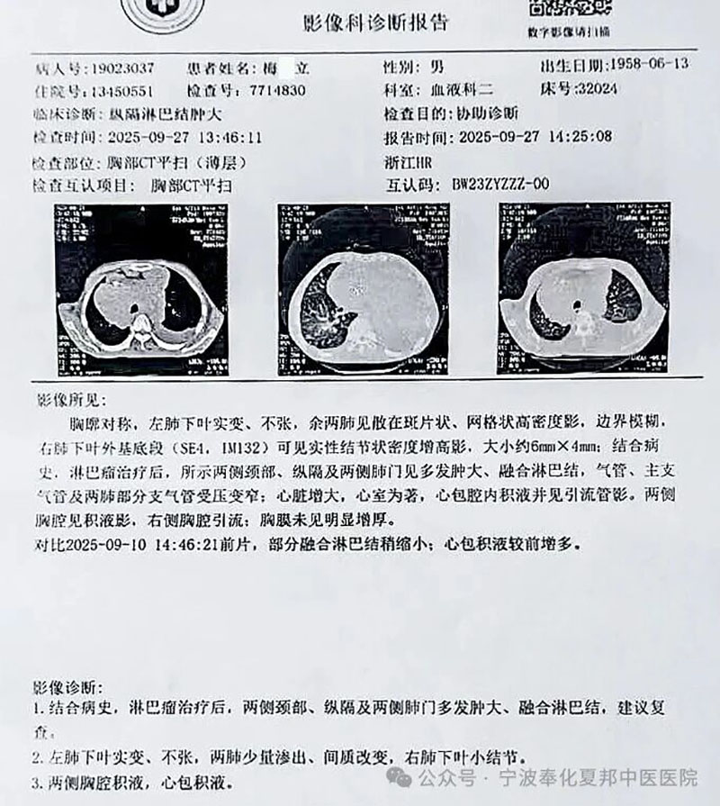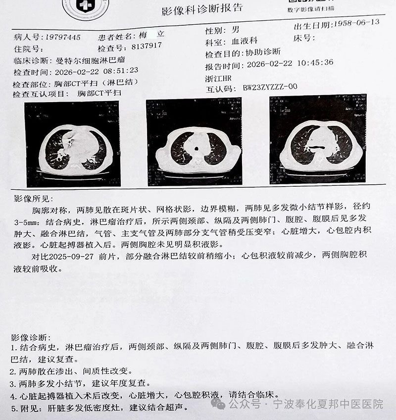 患者:梅某立|男|67 岁|套细胞淋巴瘤。